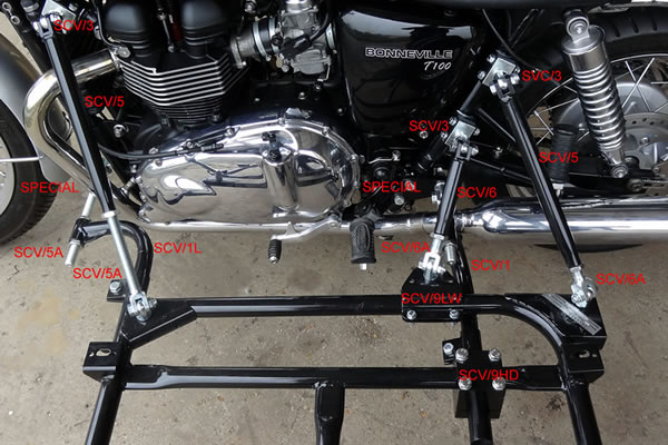 Please note the picture is for illustration only. Please read the contents list carefully. 2 x long props (SCV/5), 1 x short prop (SCV/6), 2 x long adjuster (SCV/5A), 1 x short adjusters (SCV/6A), 1 x lightweight sliding mount (SCV/9LW), 1 x heavy duty sliding mount (SCV/9HD), 2 x swan neck (SCV/1), 8 x bolts. 2 x eyebolts (SCV/8), 5 x frame clamps (SCV/3), 2 x 27mm nut (SCV/NUT27)